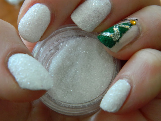 I was thinking about doing so many propositions of makeup looks and manicures for Christmas but time and laziness didn't let me. A fellow blogger then challenged me to create a Christmas Tree on my nails. I thought instantly that was never going to happen, as I'm not particularly good with nail art. Then I took it as an opportunity to learn and I accepted it. Later on, I walked into a store and randomly found green flocking powder and white loose glitter. That was genius! I was going to do a green velvety tree with snow made of white glitter! I practiced for about a week to come up with something pleasant to the eye, and the result is what you are about to see below: